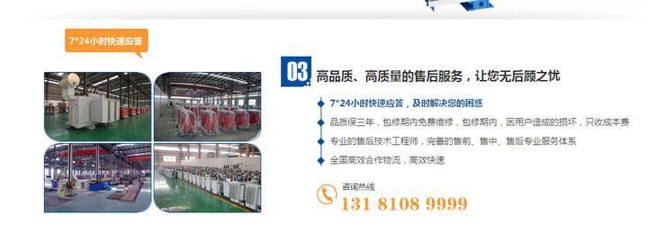 我公司生产的S13-4000KVA/10KV/0.4KV油浸式变压器采用新型绝缘结构,提升了其短路电阻;铁心采用优质冷扎硅钢片制成;高压绕组采用优质无氧铜线制成,选用双层圆柱构造;选用全部固件部件。